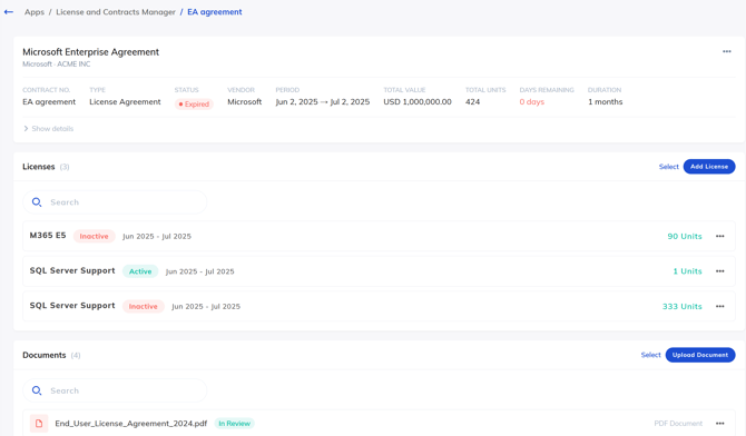 Navigate to Apps → License and Contracts Manager.