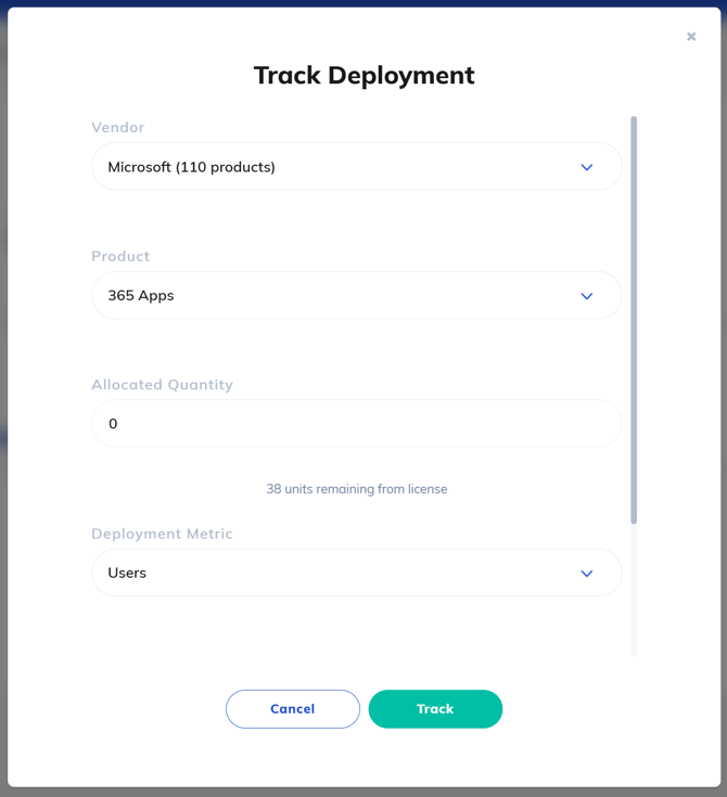 Within the Track Deployment modal, configure the following fields: