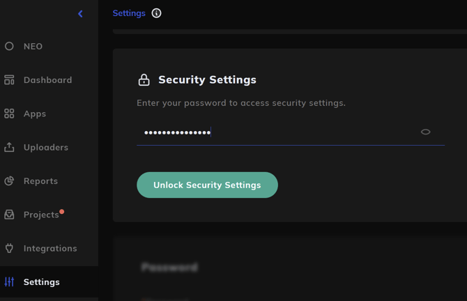 Go to Settings, open the Security section, and enter your password to unlock security settings.
