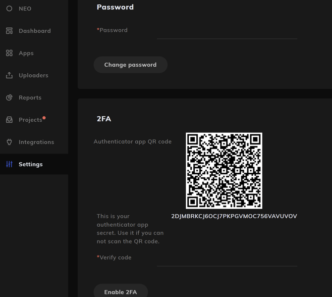 Your app will generate a 6-digit code. Enter this code into the verification field and select Enable 2FA.