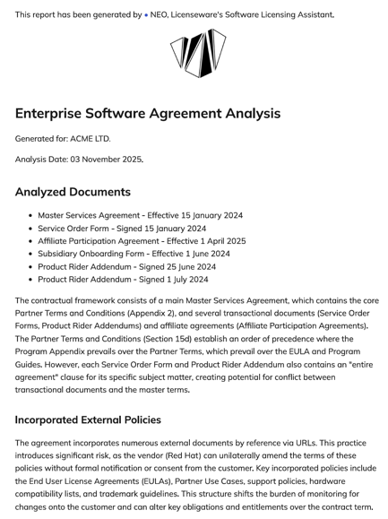 This skill allows NEO to access and analyze the contracts you manage within your Licenseware projects, delivering a comprehensive strategic brief in minutes. This turns days of manual legal review into an immediate, data-driven advantage.