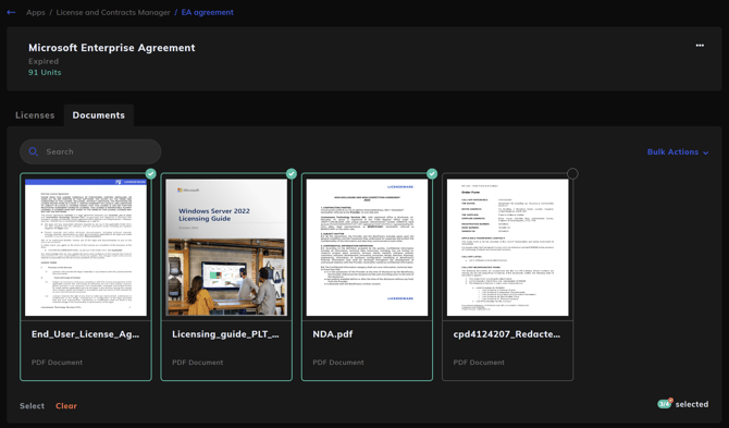Navigate to your contract in LCM for analysis, select your documents, bulk actions and request analysis: